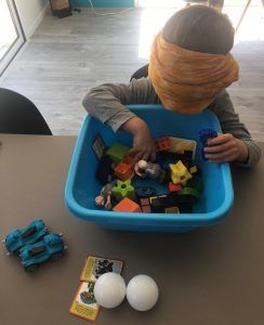 Pour cela, placez une vingtaine de paires d’objets ( balles, bouchons, cuillères, perles, jouets…) dans une bassine/grande boîte. Une fois les yeux bandés, essayez de reconstituer le plus de paires en un temps donné. À vous de jouer !